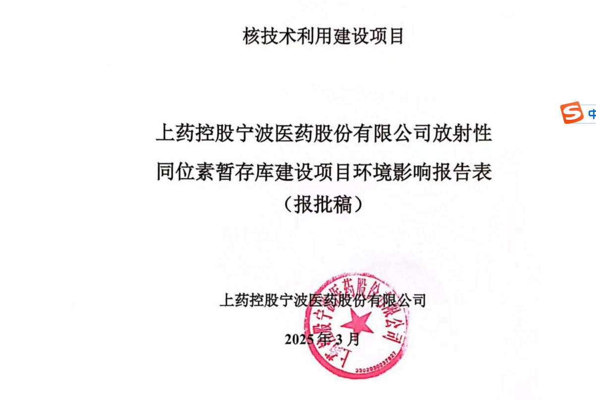 關于《上藥控股寧波醫藥股份有限公司放射性同位素暫存庫建設項目環境影響報告表》的全文公示